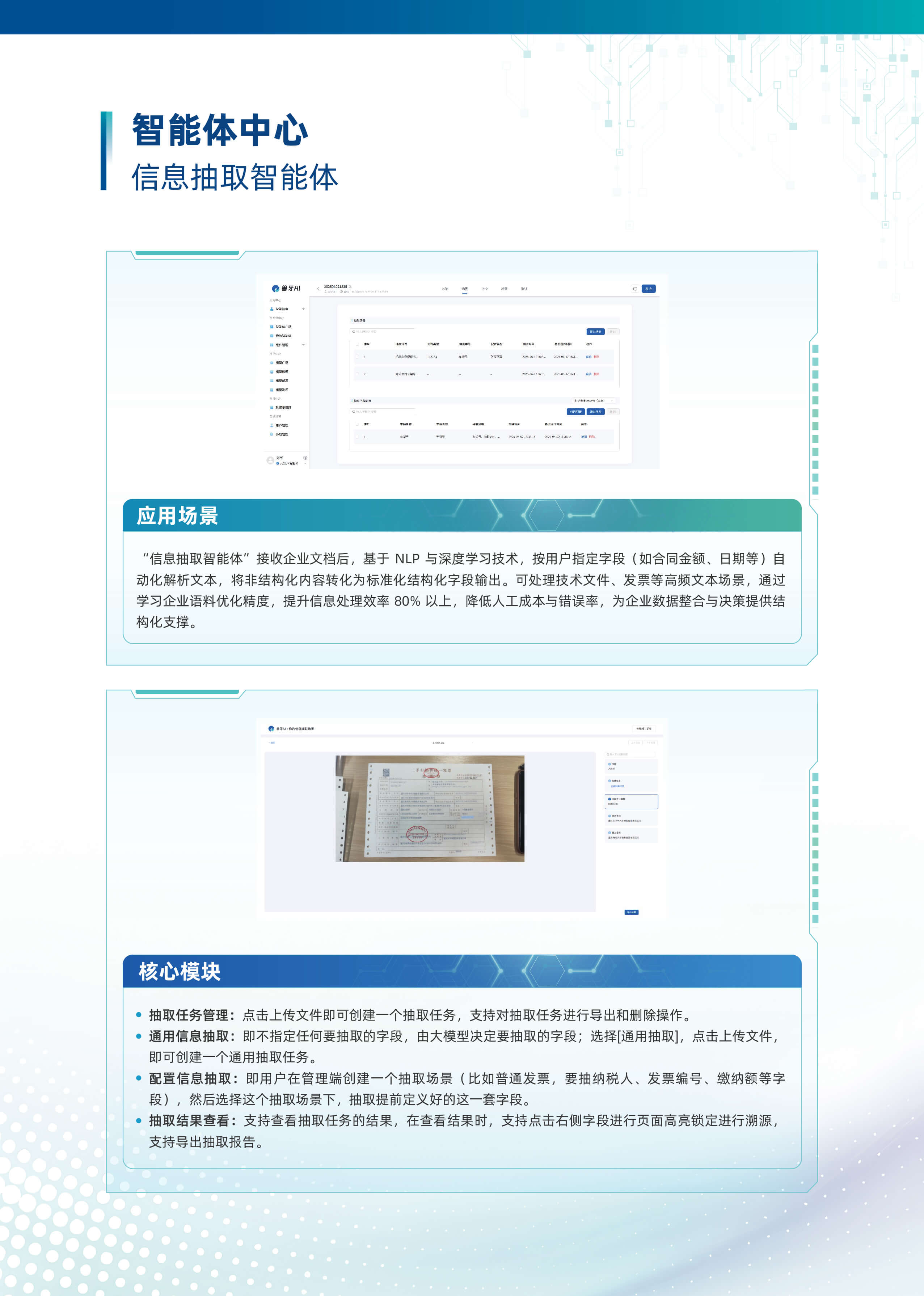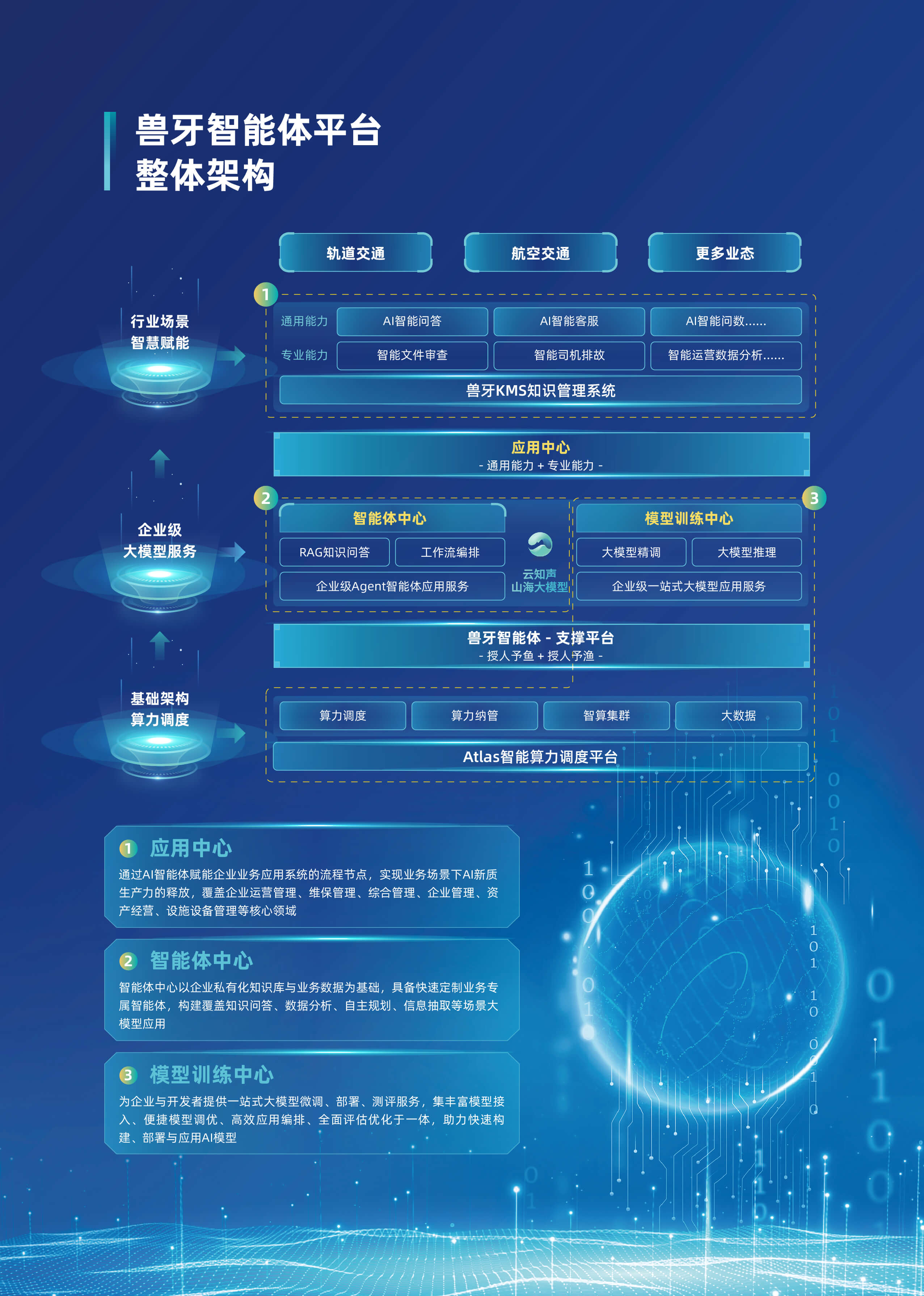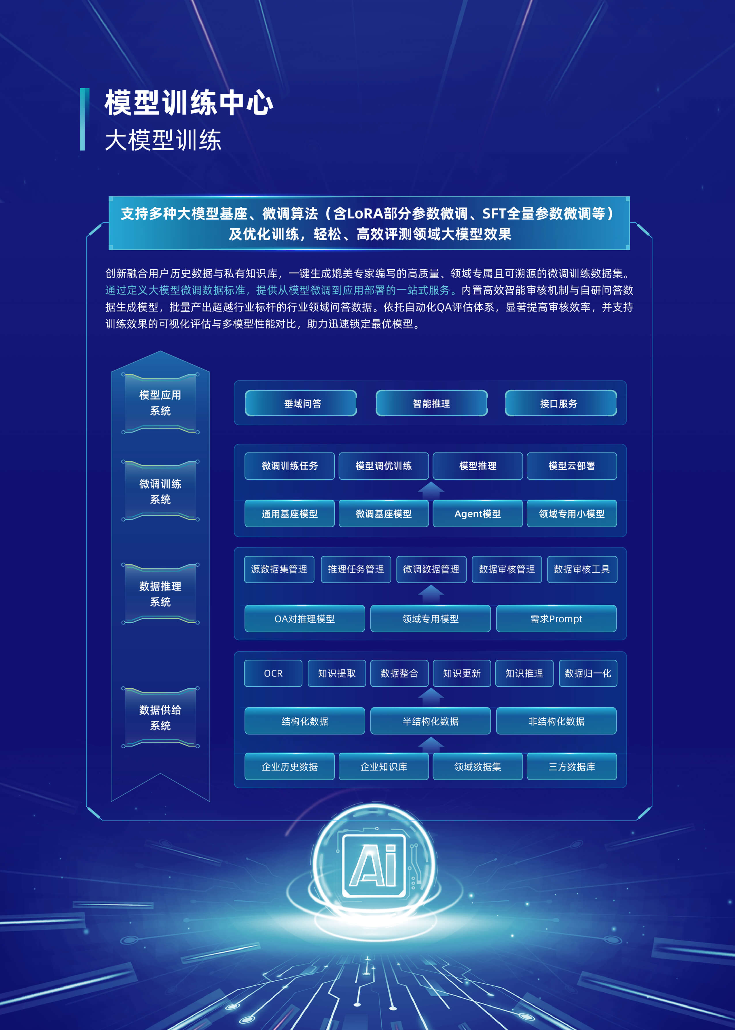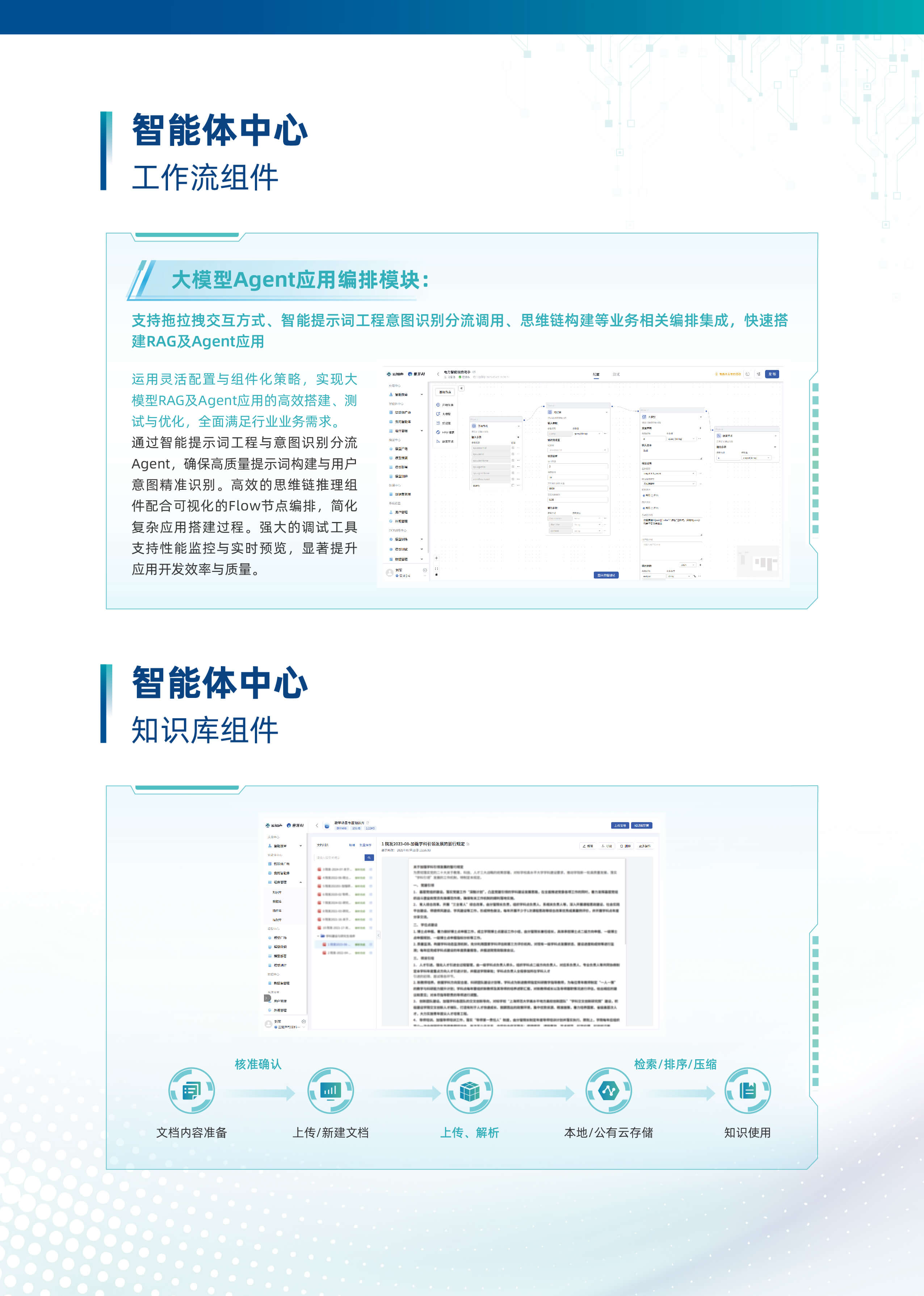 以“行業大模型+場景化智能體”為核心,深度融合多源數據與業務邏輯,構建企業全鏈路AI數智化基座。平台基於自主可控的行業大模型技術,首創輕量化智能體編排框架,支持外掛知識庫、MCP服務、多模態API及數據庫的動態調用與協同,實現跨係統數據融合與業務敏捷響應。平台依托行業大模型,創新推出三類智能體。自主規劃型智能體可自主靈活調用多渠道多維度數據,實現高效決策。知識問答型智能體憑借精準的問題理解與解析能力,快速響應各類疑問。智能問數型智能體通過自然語言交互,挖掘海量數據價值。