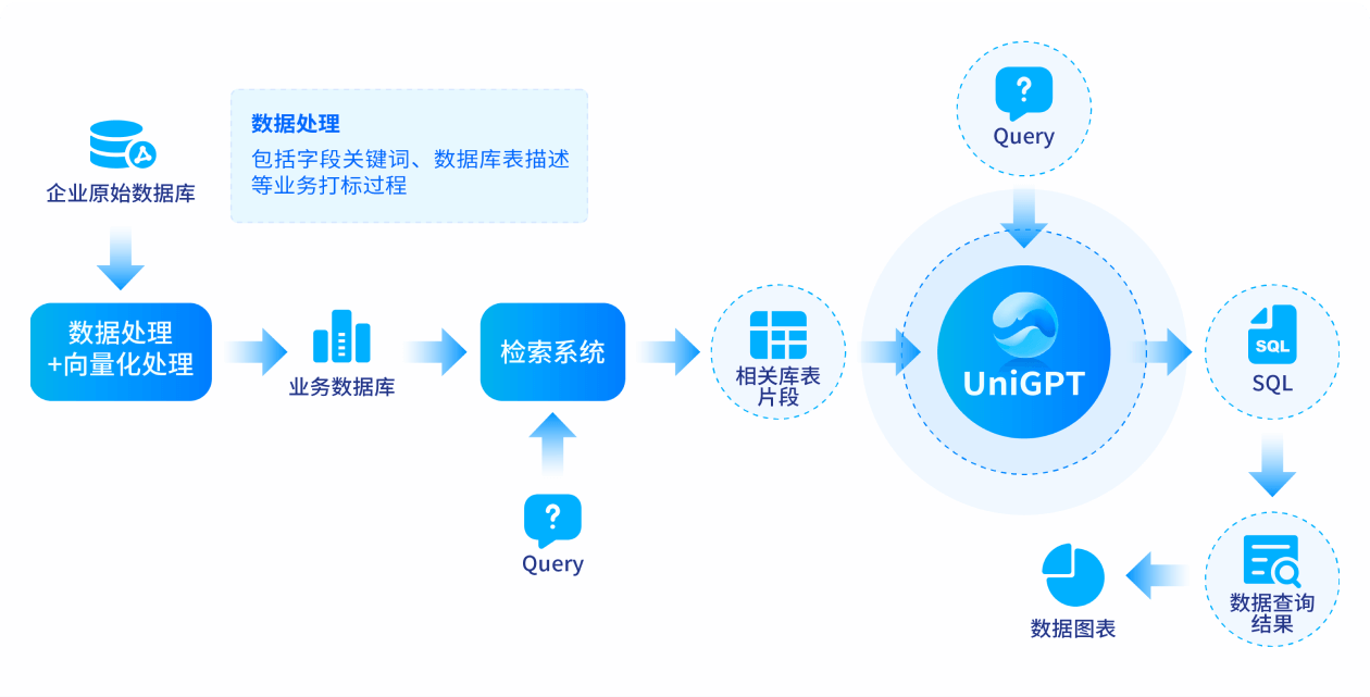 基於大模型的智能問數功能通過深度學習和自然語言處理技術,允許無技術背景的用戶以自然語言形式提出數據查詢需求,大模型能夠智能解析用戶意圖,並轉化為準確的SQL語句以執行數據庫查詢,自動生成並展示各類型的BI報表,為用戶提供高效、便捷的數據分析和查詢體驗。